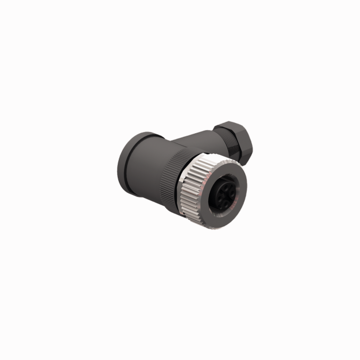 Field-wireable female connector, M12 × 1, angled, 4-pin, screw terminal connection, cable feedthrough 4.0 to 6.0 mm, core cross-section/terminal capacity 0.25 to 0.75 mm², plastic housing, metal nut |