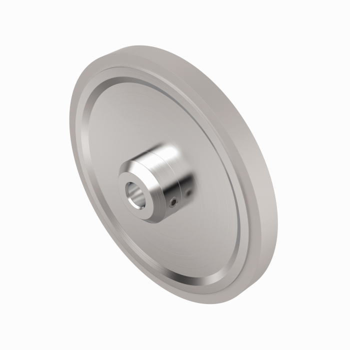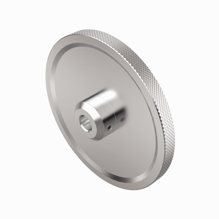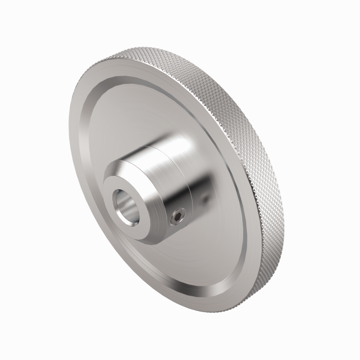 Aluminum measuring wheel (cross knurled) for encoders; circumference 6″, width 5.5 mm, D = 6 mm |
