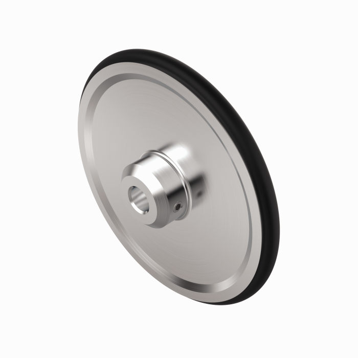 Aluminum measuring wheel (O-ring) for encoders; circumference 6″, width 5.5 mm, D = 6 mm |