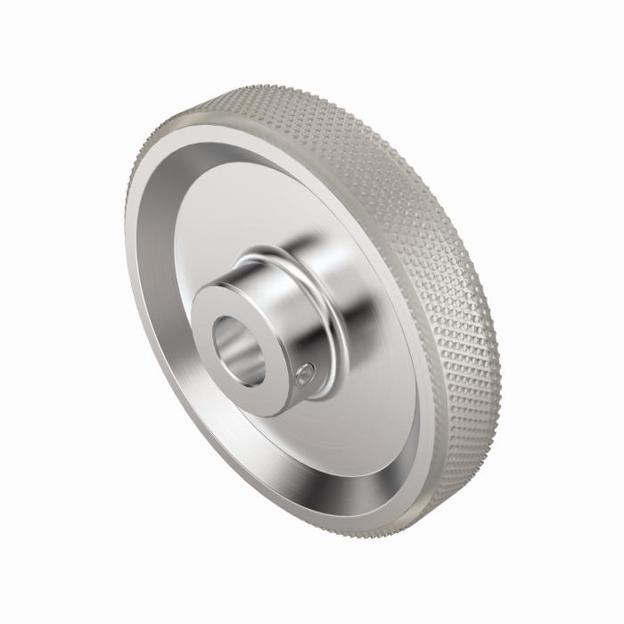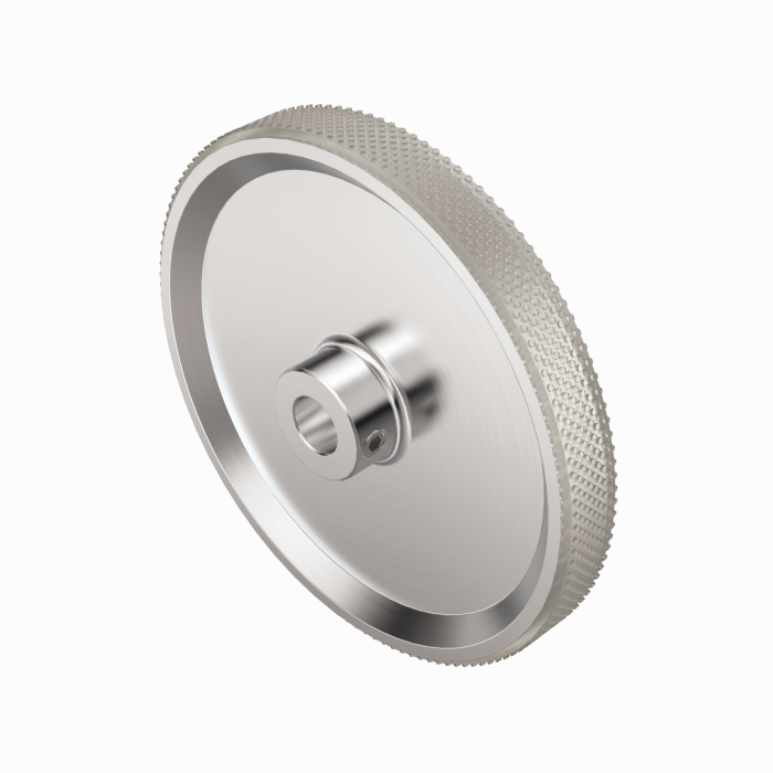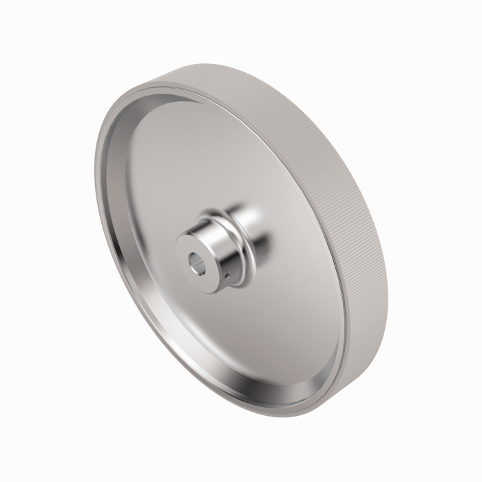 Aluminum measuring wheel (cross knurled) for encoders; circumference 0.5 m, width 25 mm, D = 10 mm |