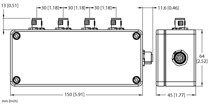  4-port, with M12 Female Connector for Supply Cable