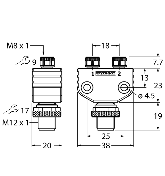 Y-Splitter without Cable, Male M12 × 1 - 2x Female M8 × 1