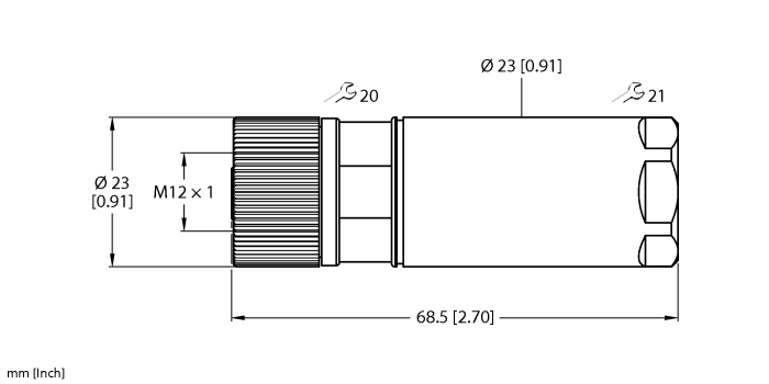 Female Connector M12 × 1, Straight