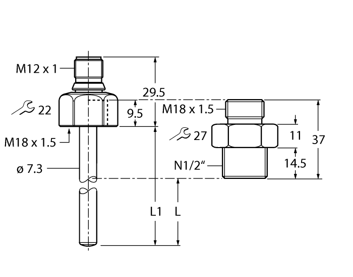 Order number: 100001047- Screw-in adaptor with process connection NPT 1/2" male thread included in delivery