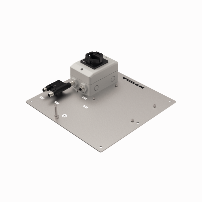 • h-splitter M12 S-coded for looping through the 400 VAC signal (1 × male connector (IN), 1 × female connector (OUT))