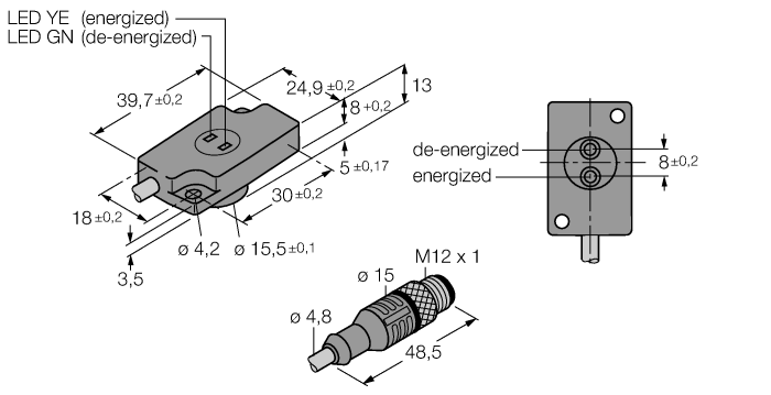 | Connector B | Male, M8 × 1, Straight |